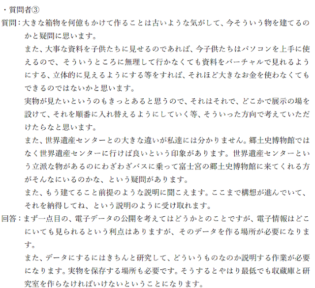 「博物館構想説明会の質疑応答富士根南・南部・大富士編、富士博物館誕生に期待」の続編となります。